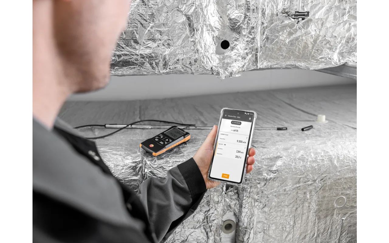 L’anemometro compatto a filo caldo testo 425, dotato di sonda telescopica, è ideale per determinare in modo semplice, rapido e preciso la velocità dell’aria e la portata nei condotti di ventilazione degli impianti di climatizzazione e ventilazione. Il collegamento con la testo Smart App permette di configurare lo strumento, visualizzare i dati (anche su un secondo schermo), archiviare le misurazioni e documentare direttamente i risultati nell’app.